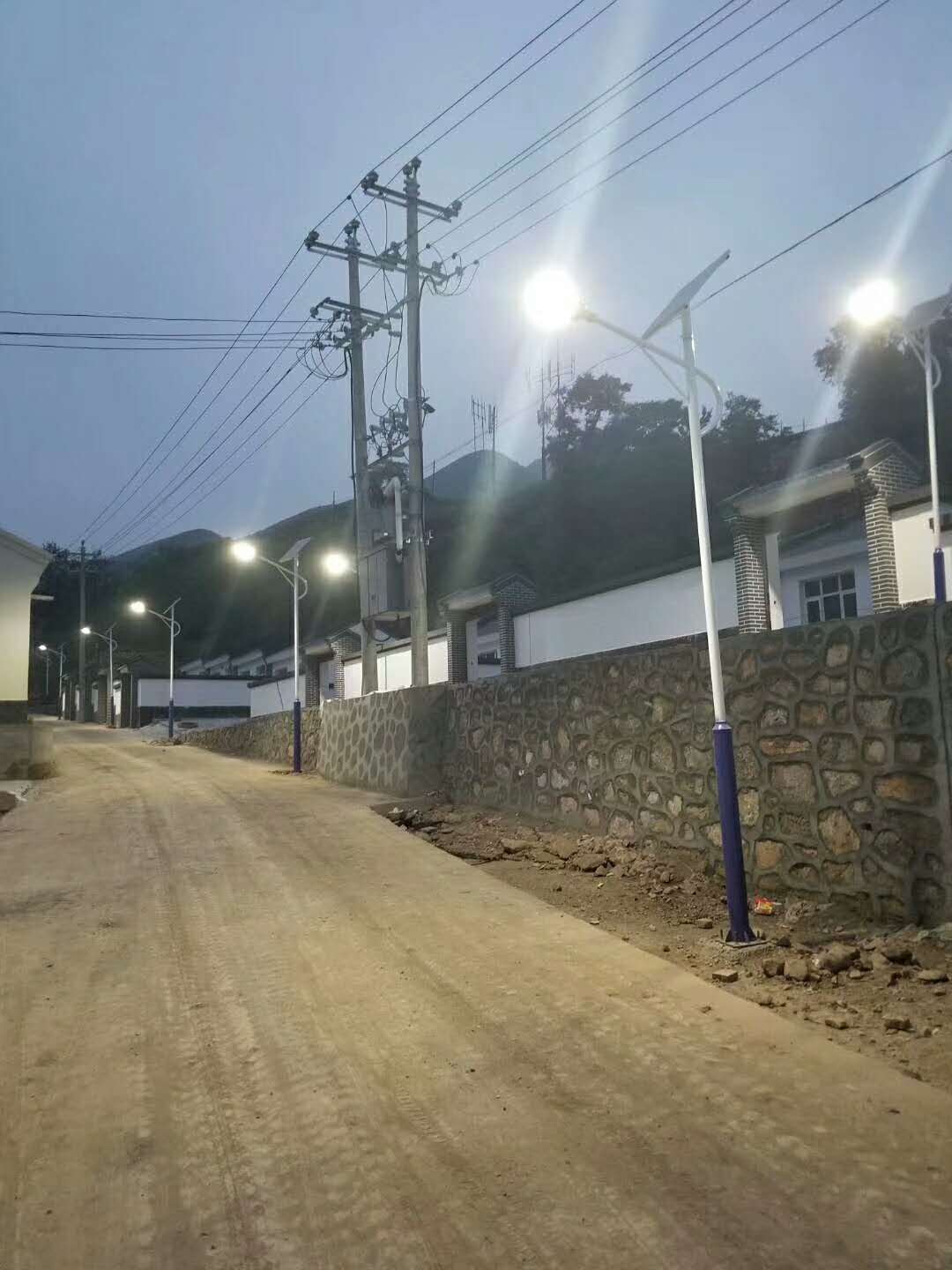 夜間照明效果,一排排嶄新的太陽能路燈提升的農(nóng)村的面貌!
